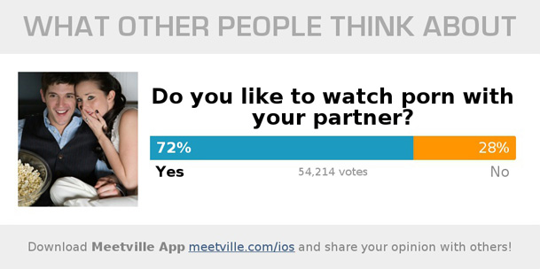 The poll posed the issue: “Do you like to watch porn with the partner?”, to which the responses were: “Yes” – 72%, “No” – 28%.